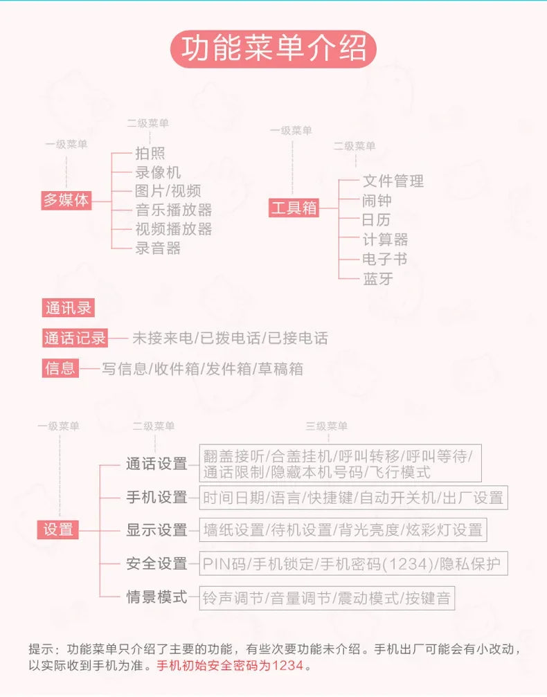 Hello Kitty pattern, function key and dial up key adopt plum blossom pattern,