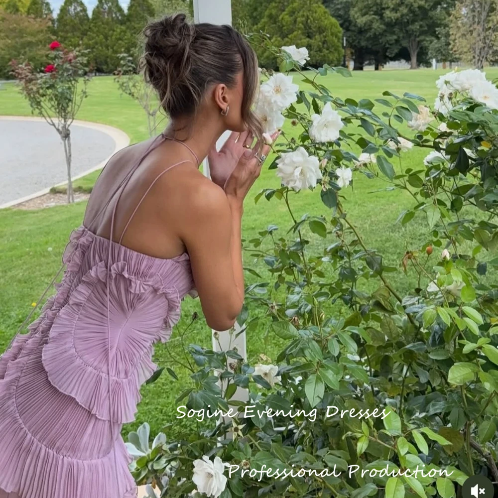Halter Chiffon Cocktail Party Dresses For Sexy Women 2025 Pleated Ruffles فساتين سهرة Asymmetric Sleeveless Evening Dresses
